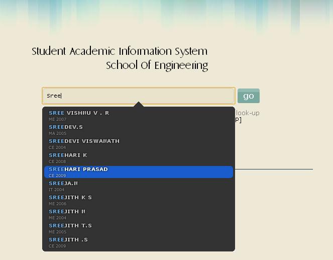 Enter the Name of Students (eg: here Sreehari prasad… he he my percentage is low so thats why we have selected Sree here)
